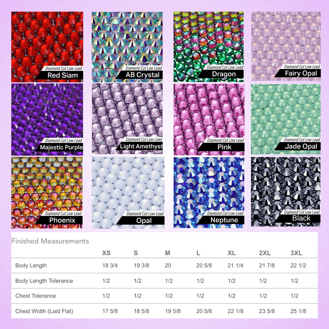 Rep your business with this Rhinestone Crystal Waxer tee! Available in sizes XS-3XL, and several crystal colors to choose from!